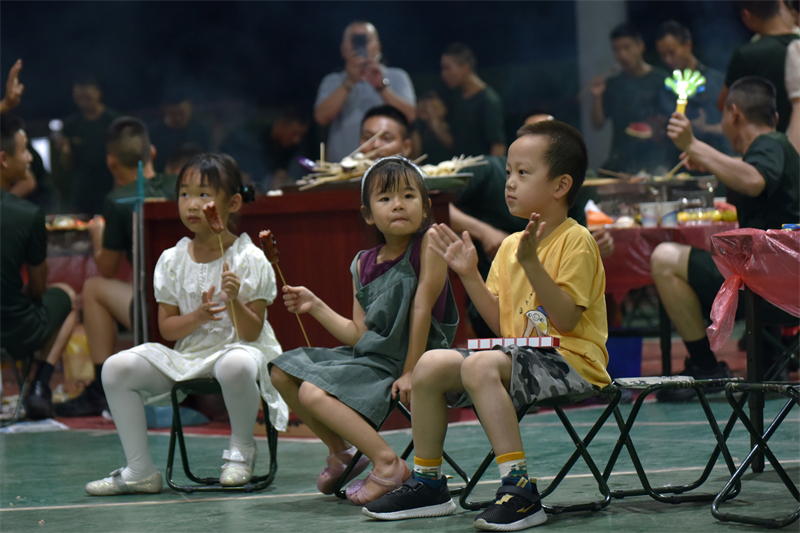军娃们在支队欢度国庆。武警福建总队机动支队 供图 官兵与家属共度假期。武警福建总队机动支队 供图 |
