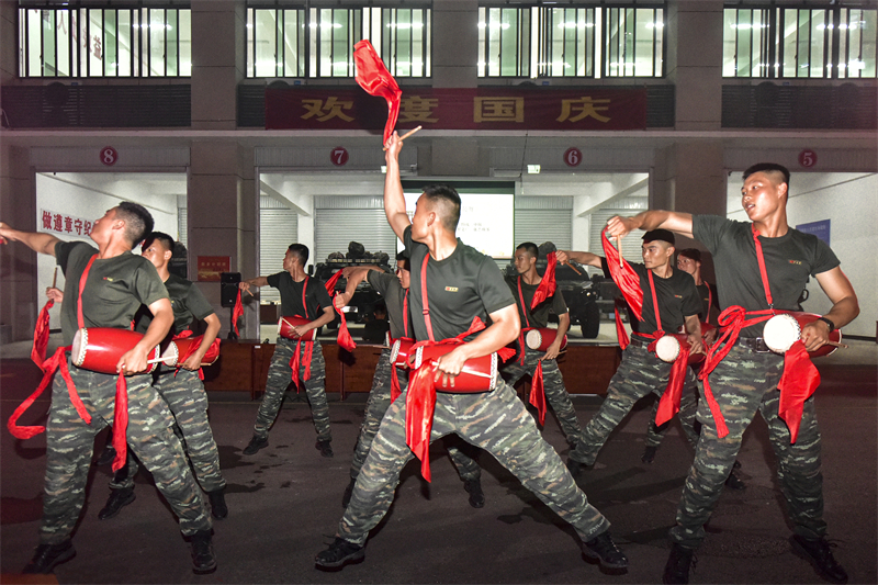 官兵们正在表演《腰鼓舞》。武警福建总队机动支队 供图