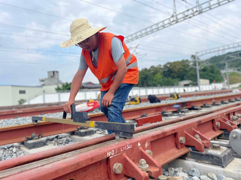 阳仙海使用电子轨尺测量线路 易威摄 东南网10月4日讯(本网记者 陈楠 通讯员 易威)这个国庆假期,坐着福厦高铁去“逛吃”,成为了来福建旅游新的一种打卡方式。福厦高铁的顺利开通离不开铁路建设者们的辛苦付出。 据介绍,福厦高铁是我国首条设计时速每小时350公里的跨海高铁,为保证列车运行安全平稳,作业人员必须对轨道几何尺寸进行精细调整。福州工务段的精调队员们主要负责福厦高铁福州南至福清西区段156km的线路精调作业,精调期间,他们每天需要工作10小时以上,至少要对108万个、超过200吨的配件进行更换调整,每人每天要行走2万余步,弯腰起身1200多次,不断与零点几毫米的误差“较劲”。该段的精调队伍以党团员为骨干,平均年龄不足28岁,其中有多人曾参加过温福、福平、沪昆等新线的精调工作。他们主动请缨,勇担使命,为确保新线如期开通,所有作业人员风雨兼程,披星戴月,夜以继日的坚守在一线。 9月25日晚上20时,福厦高铁福州南动车所编组站场内热火朝天,福州工务段60余名精调队员在长乐东线路车间主任阳仙海的带领下正在进行福厦高铁开通前的最后一次大型精调施工。 阳仙海是长乐东线路车间主任,也是福厦高铁线路精调筹备组的组长,他曾参加福建省第一条高铁——温福铁路的精调作业,经验丰富。在参加温福铁路精调时,他是冲锋陷阵的“猛将”,是攻关夺隘的“高精度坦克”,也是同事们眼里的“拼命三郎”。 来福厦高铁前,他担任福州工务段线路科科长一职。“专业水平好、干活踏实,组织协调能力又强,管高铁绝对是把好手。”这是大家对他的一致评价。2022年下半年,在福厦高铁开通前的精调攻坚阶段,为了啃下这块“硬骨头”,阳仙海毅然提出申请,主动投身这条跨海高铁的精调作业中来。 转投福厦高铁后,由于岗位经历的原因,他深知新线提前介入和精调质量的好坏直接关系到后续运营的安全和稳定,因此他从提前介入到线路精调到静态验收,始终秉持着打造“精品福厦”的高标要求,充分发挥自己的专业优势,带领60名轨道精调师不断成长,坚持精益求精的精神,花费大量的时间与精力钻研轨道精调的理论与技术,多方学习国内其他高铁线路的精调经验,不断完善作业指导书中的关键控制环节技术标准,并将之运用到实践中。