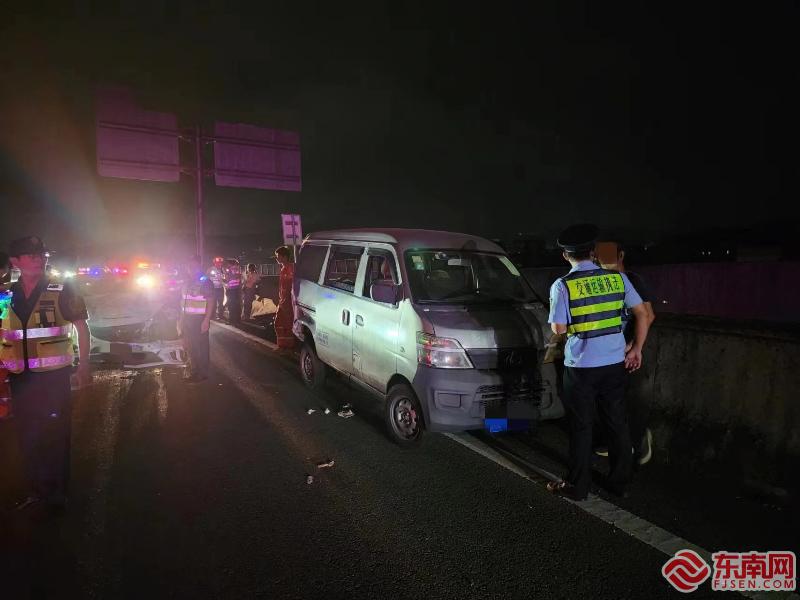 了解到司机被卡在车厢内,无法爬出车外,鉴于隧道内视线差,容易发生二次事故,威胁车上人员安全,执法员爬上侧翻的货车,尝试打开朝上的车门,但过程却十分艰难,在15时20分两位执法员成功打开车门,协助司机从车门爬出,继而迅速将司机转移到安全地带。 随后,高速交警、高速公路公司道路勤务中心等相关部门人员陆续赶到现场实施救援。经过一个小时各部门的通力合作,隧道侧翻车辆已拖离,现场清理完毕,隧道恢复正常通行秩序。 一路多方,执法员迅速处置追尾事故 10月1日22时许,在双安高速南安北出口匝道处,发生一起小车追尾面包车的事故,泉州高速执法支队安溪中队接高速路网中心转警后,联系相关部门联合处置,并组织执法员赶赴现场。