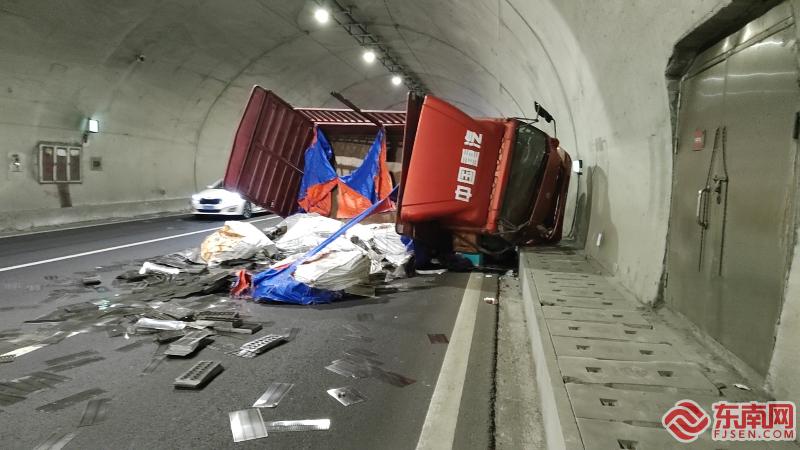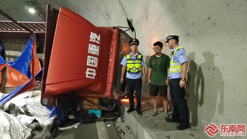 隧道内货车侧翻,执法人员紧急救援 9月30日14时50分,宁德高速行政执法支队一大队福鼎东中队接到通报,甬莞高速A道青山隧道内有货车侧翻,占用两个车道,且有人员卡在车厢内,宁德高速执法员第一时间赶赴现场。据统计,自假期开始甬莞高速闽浙-福鼎东段断面流量超过26000辆次,车流量较大,交通事故需火速处置,才能减少高速公路的拥堵。