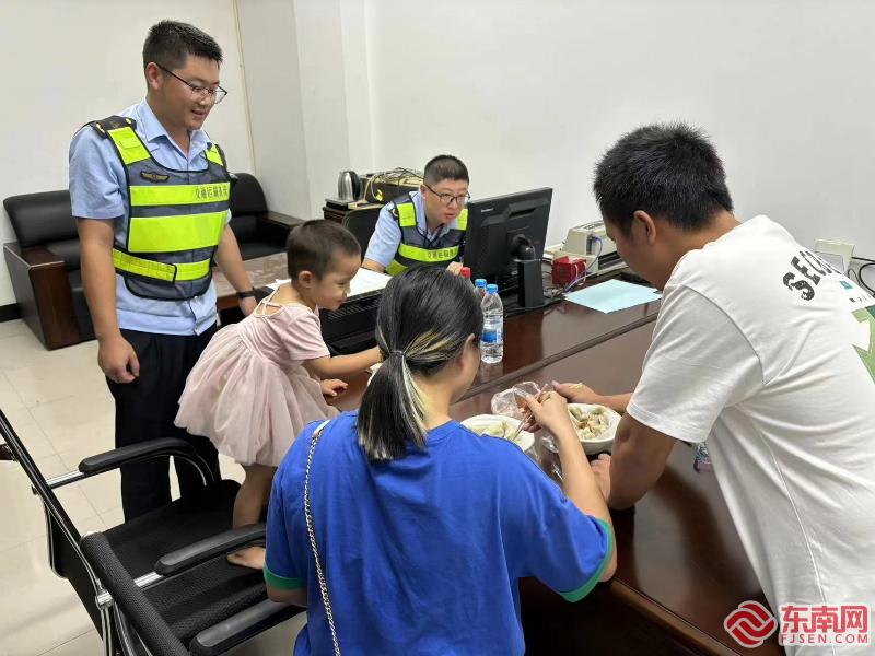 经医院检查,车主一家身体均无大碍。当天下午,车主前来大队违章处理窗口欲处理路产赔补偿事宜,得知车主一家只是路过,下次再来可能性较低,且车主已联系相关救援车辆前来托运事故车辆,晚上即将离开,为了方便当事人,执法人员毫不犹豫加班加点处理。案件处理完毕后,已是傍晚时分。考虑当事人人生地不熟,车主一家晚上未进晚餐,执法人员立即联系附近餐馆送来外卖,车主一家连连感谢“要不是你们的出现,不仅早上我们不知道怎么办,晚上还得饿肚子,不知道什么时候才能用餐。”