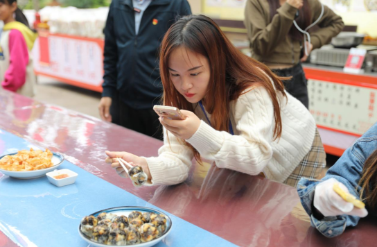 东南网10月21日讯 (记者 叶卢苗艺 曾群峰 文/图)才采西际蜜桔,又食沙县小吃。21日下午,由福建省委网信办、省农业农村厅、省文旅厅联合主办,各地市网信办、东南网、省网络直播协会承办,中国银行福建省分行协办的“福农优品·我在家乡等你来”文旅乡村网络直播活动,来到沙县小吃第一村——夏茂镇俞邦村。主播团品美食、逛美景、学做沙县小吃,切身感受小吃产业如何强村富民,香飘世界。 穿过绿树掩映的木质廊桥“龙凤桥”,来到村内的一棵千年古樟旁,活动从古樟旁的“寻根追味”小吃街开始。主播们一走进小吃街,只见各种美食琳琅满目,手打扁肉、拌面、烙粑、甜烧麦……20余种地道的沙县小吃都在诱惑着主播们。主播们一边大饱口福,啧啧称赞,一边向粉丝介绍各种小吃的原料、做法及口感。海峡网主播佳琪向直播间的粉丝们极力推荐,“味道太对了,如果想吃到正宗美味的沙县小吃,一定要亲自来俞邦村尝一尝。”