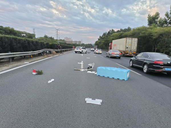 惊险!货物掉落引发交通事故 执法员追查肇事货车