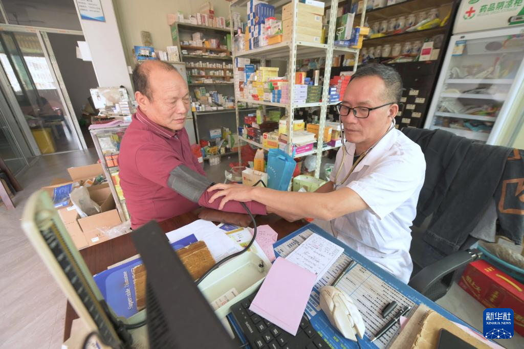 11月15日,下岐村卫生所村医在为村民王建德(左)进行健康检查。新华社记者 林善传 摄