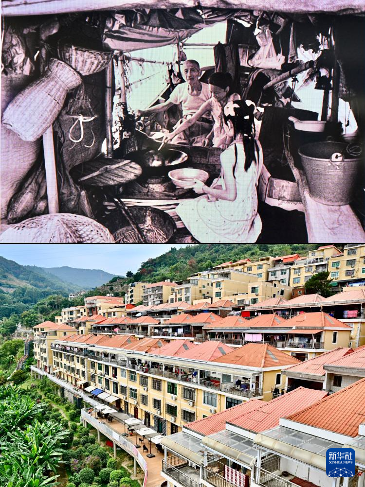 拼版照片:上图为20世纪80年代福建宁德地区的连家船民生活场景(资料照片);下图为2023年11月15日拍摄的下岐村(新华社记者姜克红摄)。 在福建省宁德市福安市下岐村,历史上,村民祖祖辈辈以在浅海滩涂“讨小海”为生,一条小木船就是几代人的家,生活条件异常艰苦,被称为“连家船民”。 20世纪90年代,福建“造福工程”启动,下岐村采取“分期分批,全面搬迁”的办法,将2000多名渔民安置上岸。至此,下岐村的人们告别了漂泊生活,该村被誉为“闽东连家船民上岸第一村”。 连家船民上岸定居后,当地的党员干部坚持“四下基层”察实情、找问题、谋良策、促发展,引导村民发展水产养殖、海洋捕捞以及贸易、物流、餐饮等产业。2022年,下岐村人均纯收入从上岸时的不足千元提高到30360元。 如今的下岐村,成排的小洋楼矗立,渔民广场、白马公园等休闲设施一应俱全,呈现出一幅百姓安居乐业的现代乡村图景。 新华社发