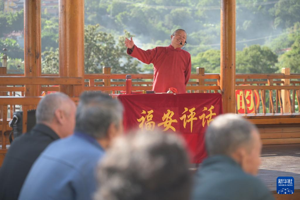 11月19日,下岐村村民在渔民广场听演艺人员讲“福安评话”。新华社记者 林善传 摄