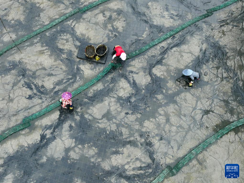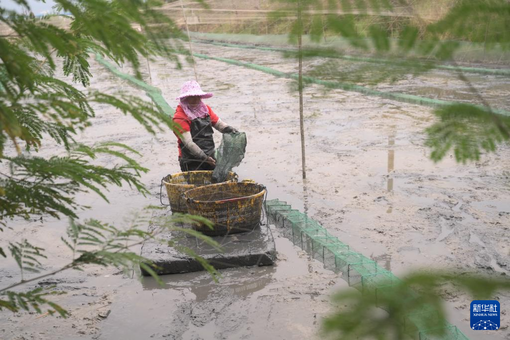 11月15日,下岐村村民在收捕养殖的跳跳鱼。新华社记者 姜克红 摄