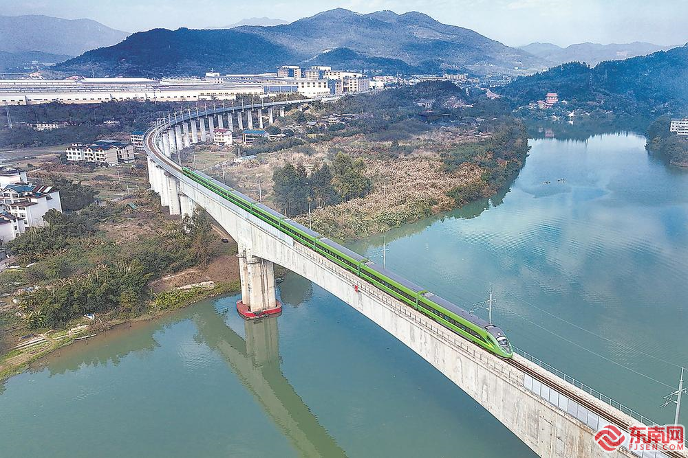 东南网12月31日讯(福建日报记者 林辉 通讯员 张海根 摄影报道)12月30日,南昌至泉州C879次“复兴号”动车组列车行驶在兴泉铁路清泉段上(上图)。当日,是兴泉铁路开通一周年。 据了解,去年12月30日,兴泉铁路全线贯通,兴泉铁路西起江西兴国站,经赣南丘陵进入福建山区,穿越武夷、戴云山脉抵达泉州,是赣闽腹地联通东南沿海的一条经济大动脉。据统计,开通一年来,兴泉铁路发送旅客449万人次,发送货物143万吨,极大助力沿线地区经济社会发展驶入“快车道”。 |
