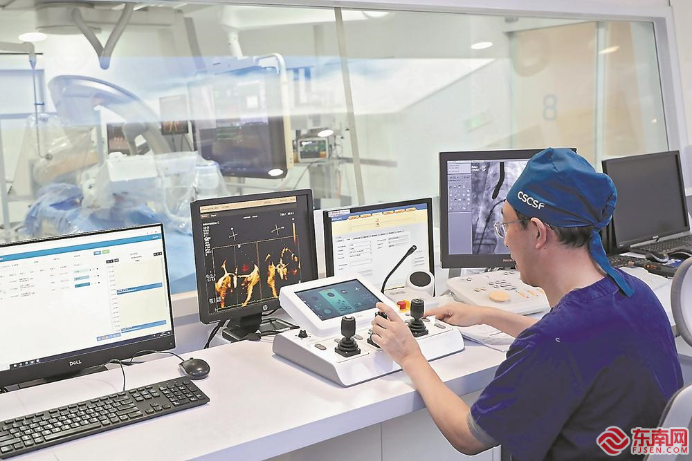 厦心院长王焱在手术间外操作机器人手术。 东南网12月31日讯 (福建日报记者 邱赵胤 文/图) 29日,厦门大学附属心血管病医院(简称“厦心”)完成一例机器人经导管二尖瓣微创手术。 据介绍,这是全球首例通过机器人完成的经导管二尖瓣微创手术。这套机器人手术系统具有高度灵活的操控性,医生操控它能对器械进行更加精准的定位和移动,处理手术中更微小及复杂的解剖情况,从而提高手术操作的精度及安全性,减少手术时间,降低患者术中并发症的发生,进一步保证患者安全。 |