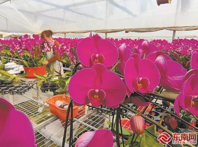 花姿喜庆、寓意吉祥的蝴蝶兰,是新年花卉消费市场的主角之一。连日来,在福清市镜洋镇、海口镇等地的蝴蝶兰种植基地,约60万株蝴蝶兰进入盛花期,迎来四面八方的客商选购。据悉,这些蝴蝶兰大都销往省内的泉州、莆田、平潭等地,随着春节临近,销量明显增多。福建日报记者 卞军凯 通讯员 林佳 陈岚 摄影报道 |