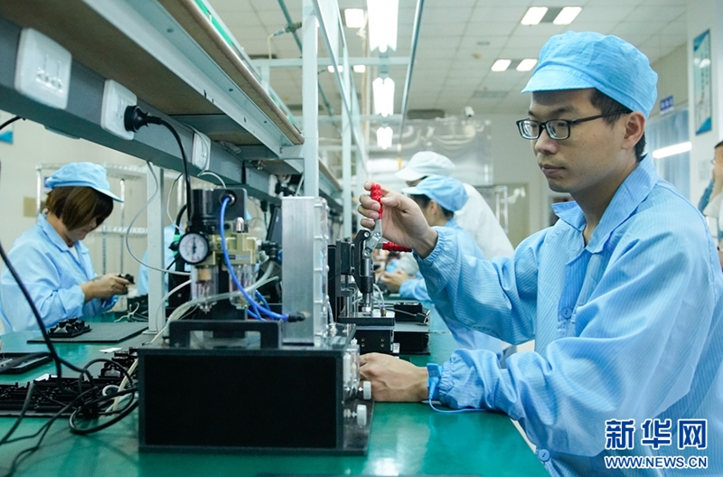 漳州宏发电声有限公司是国内继电器行业首家拥有博士后工作站的企业,使用自主研发的自动化产线,每0.8秒即可组装完成一个继电器。新华网 蒋巧玲 摄
