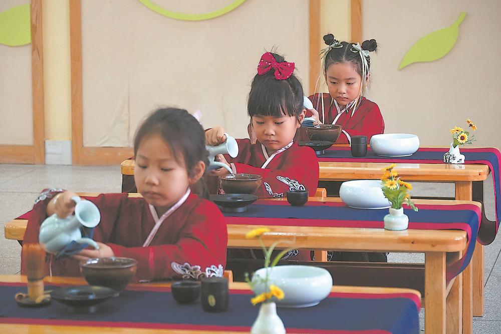 武夷山市实验幼儿园通过泡茶、品茶等活动,让幼儿潜移默化学习朱熹的儒雅、明礼、好客等优秀品质。 本版图片由采访对象提供 |