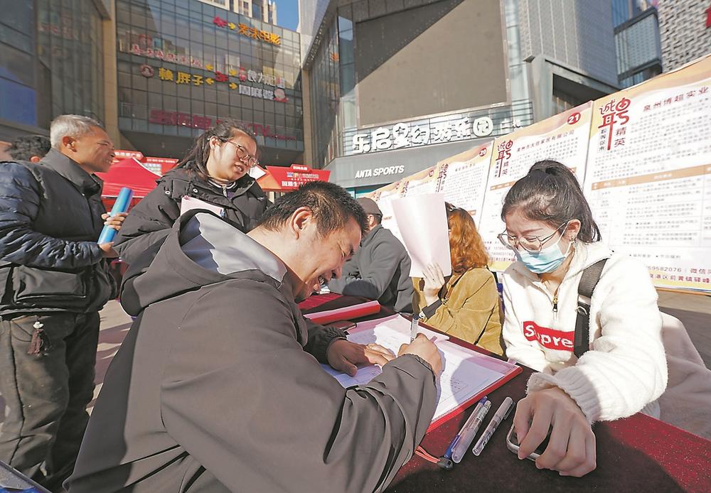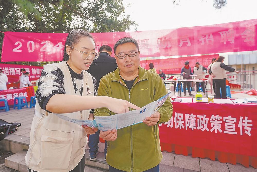1月31日,在福州市鼓楼区乌山社区文化广场,鼓楼区举办“2024年就业援助月招聘会”活动,16家用人单位提供80余个就业岗位,涵盖餐饮服务、酒店管理、物流配送等领域,为基层就业困难群体、未就业高校毕业生、“4050”人员提供求职引导和便利,助力稳岗就业。谢贵明 摄