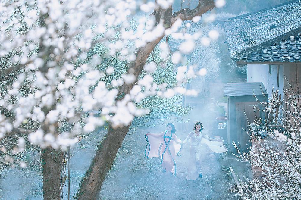 漫山遍野的青梅,花开似雪。 □王福平 文/图 又到了赏梅的季节。 南国的福州难得看到北国千里冰封、万里雪飘的壮美场景,却一定可以望见青梅花开、落英似雪的绚丽景致。 进入新年以后,在福州的后花园、享有“中国梅李之乡”美誉的永泰县,从葛岭镇到嵩口镇,从大樟溪到天门山,山涧、河谷、漫山遍野的青梅花次第绽放,如雪似霜,延绵数十公里,蔚为壮观。 永泰县青梅种植面积8万多亩,农户大多通过开垦山地或在房前屋后广种青梅。青梅树每年12月底开始开花,白色的单瓣花,一朵有五瓣,寓意五福临门。因品种不同、地势海拔差异,花期有一个多月。 葛岭镇溪洋村文埕湾梅园是永泰梅花文创旅游开发较早的地方,村内吃住行游购娱应有尽有,具有乡土气息的民宿建筑与梅花树相映成趣,构成了一幅幅精美的画卷。 城峰镇洋门村大坑口梅园则是另一番景象。一条山涧溪流从山谷里穿过,两岸老桩青梅树遥相呼应,清风徐来,落英缤纷,花瓣随波逐流,一路报春。 有着千年历史的城峰镇金沙村地处永泰东的高速公路出入口,这里有一片全县最大的千亩梅园。游览之余,我又走进那家梅园茶舍,意外看到了几张我前年拍摄的梅花老人照片。茶舍经营者陈乐说:“照片上的老人是我90岁高龄的爷爷奶奶,这些梅树都是他们年轻时种植的。前人栽树,后人乘凉,他们就像这片青梅,历尽沧桑,在寒冬中绽放,在逆境中成长。每次看到爷爷奶奶的这些照片,我心中都会激发创业的激情。” |