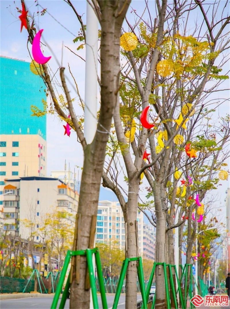长乐街头年味浓。 姜亮 摄 东南网2月7日讯(本网记者李莎莎 通讯员 姜亮)年尾已至,年味正浓。记者探访长乐街头,“中国红”已经成为了“最美主色调”,据春节氛围布置负责人金正涵介绍,2024年长乐春节氛围布置项目1月26日开始施工,目前已基本完成并亮灯。 漫步在长乐街头多条主次干道、重要点位、公园景点等装饰一新把欢乐祥和的春节氛围感“拉满”。 暮色降临,华灯初上。道路两侧的红灯笼缀满枝头,五彩斑斓的灯火绵亘蜿蜒,棵棵树木身披“彩衣”。形态各异的灯组耀眼夺目温暖的光晕肆意“流窜”吸引人们纷纷驻足打卡映照着一张张幸福的脸庞。 “晚上出门看到沿街的彩灯都亮了,过年的气氛来了。今天长乐天气挺好的,再配上树梢的这些灯笼就让人感觉特别喜庆,心情自然就好。”市民张女士说道。 “今年氛围布置与往年有所不同,针对不同的路段我们采用了不同的主题和布置内容,比如吴航路至胜利路我们采用‘福文化’主题,在布置上多以灯笼、福袋、福元素灯组等装饰为主;在郑和路采用‘海元素’主题,多以海星灯具、鲸鱼和海豚灯组等为主。”金正涵说,本次氛围布置主要打造长限环岛、胜利路环岛、南山公园以及和平街等节点,并在这些区域利用各式灯组来营造祥和欢乐的春节氛围。 这满满的“年味”你感受到了吗?约上亲朋好友,在长乐的街头走一走,过千年古邑风味中国年,感受浓浓的新春气息,拉开2024龙年精彩序幕。