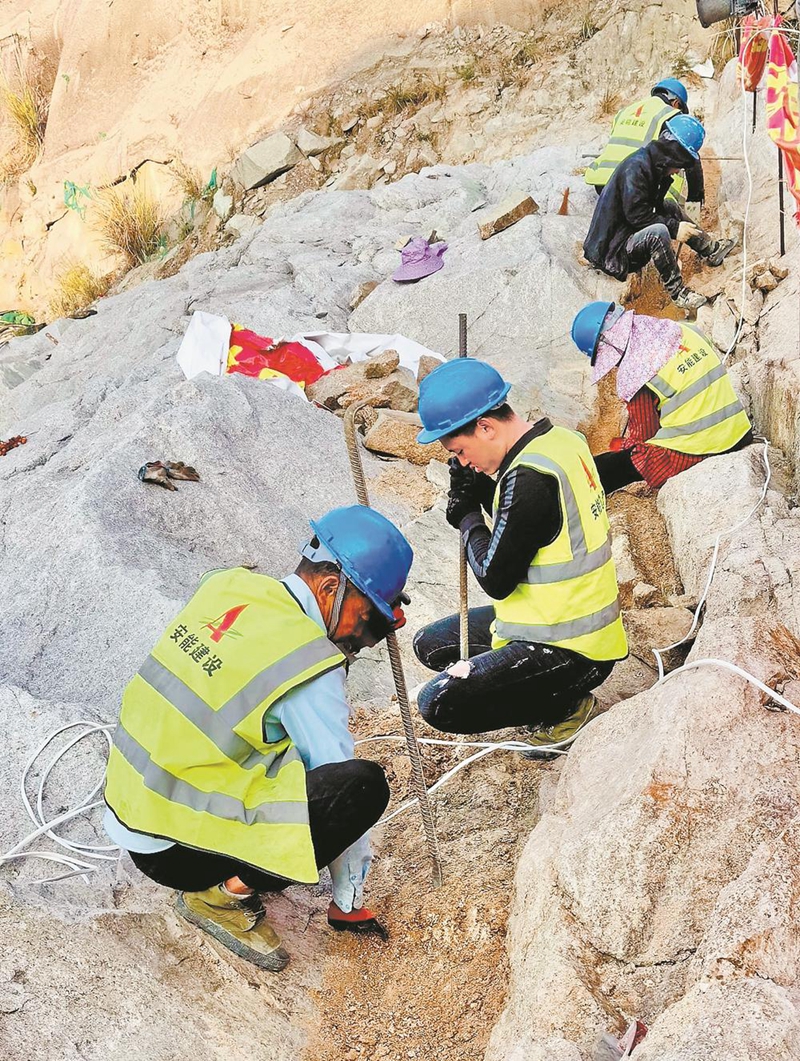 春节期间,罗源昌西水库工程施工现场,工人正在进行坝基处理。陈旻 摄