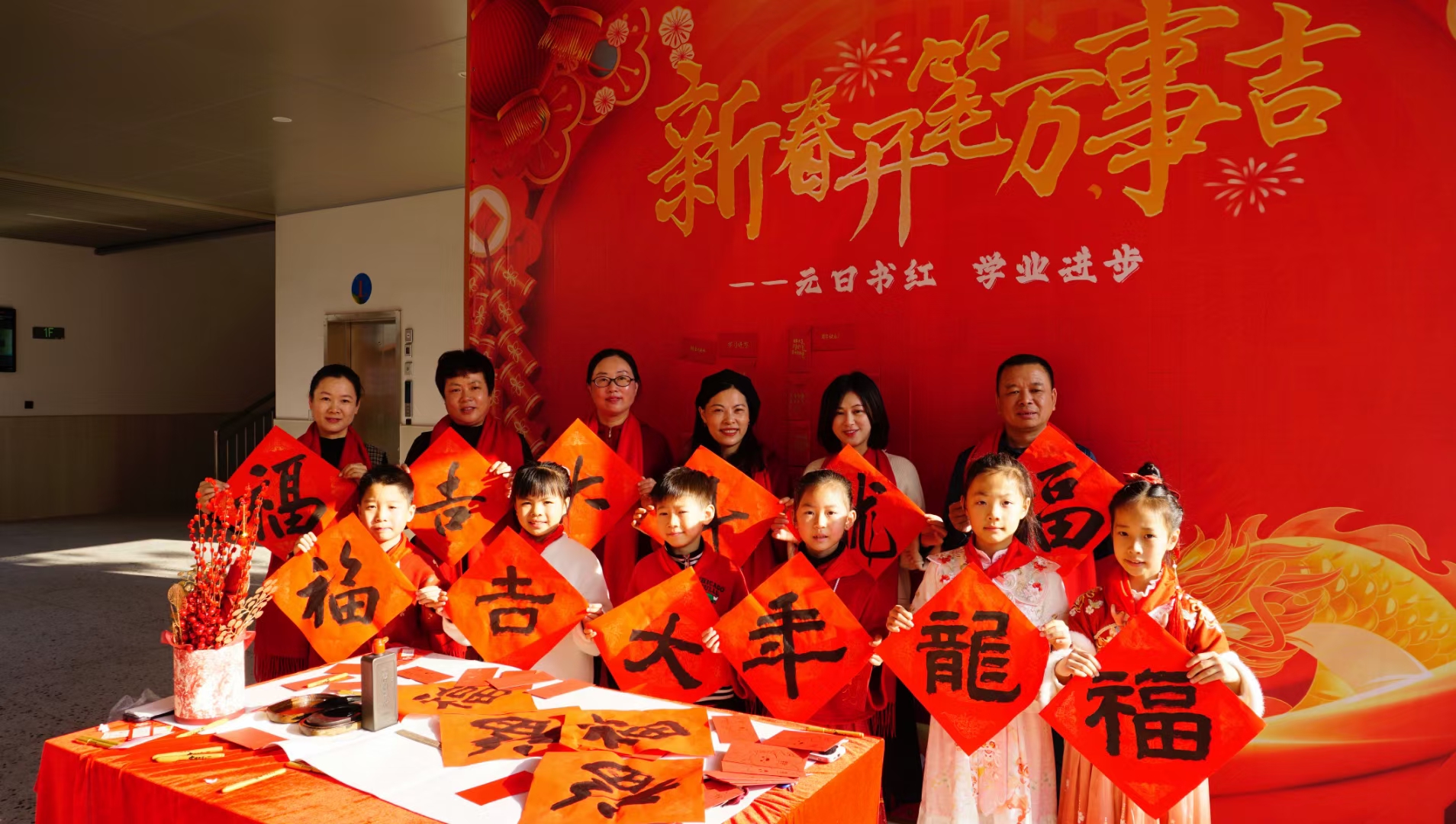 马尾第二实验小学新春开笔书写未来展望 (学校供图) 华南实验小学:精彩表演迎接学生返校 在福州华南实验小学,门口两条红色巨龙盘旋而上,威武雄壮,12名学生代表穿着喜庆的服饰,手持“华南家欢迎您”和“知行健礼义信”十二字卡,在门口欢呼跳跃着,欢迎大家返校。