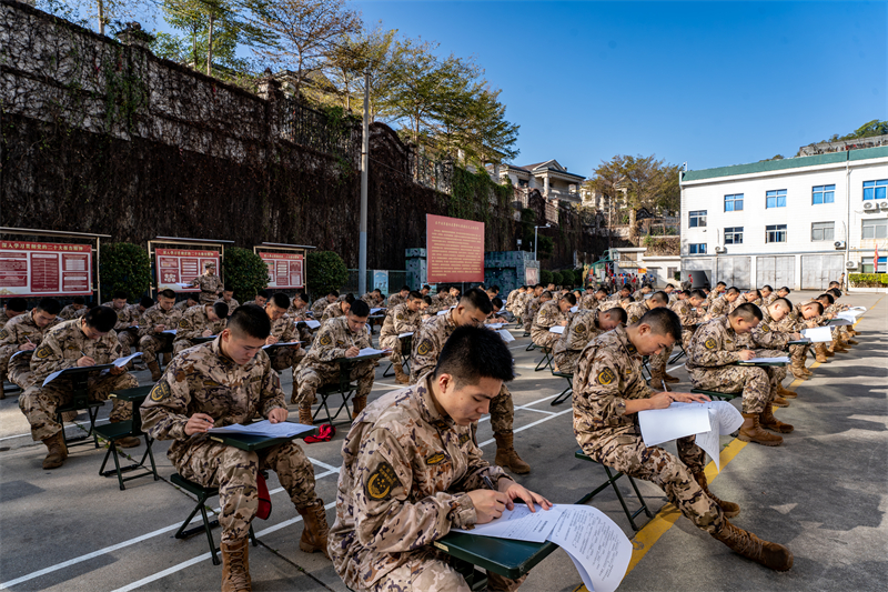 30×2考核场上,考生争分夺秒。杨乐松 摄 东南网2月24日讯(本网记者 余跃)近日,武警福建总队厦门支队严密组织2024年度春季军士选晋考核。现场“战”味十足,全面深入检验满服役期士兵的综合能力素质,通过透明公开的选拔机制,锻造思想坚定、军事过硬、专业精湛的警士人才队伍,为提升部队战斗力建设保驾护航。 “快!快!快!冲刺!”“加把劲,冲过终点!”……3000米跑、仰卧起坐、30×2蛇形跑、引体向上等体能项目无缝衔接,考核人员个个咬牙坚持、顽强拼搏、全力以赴!