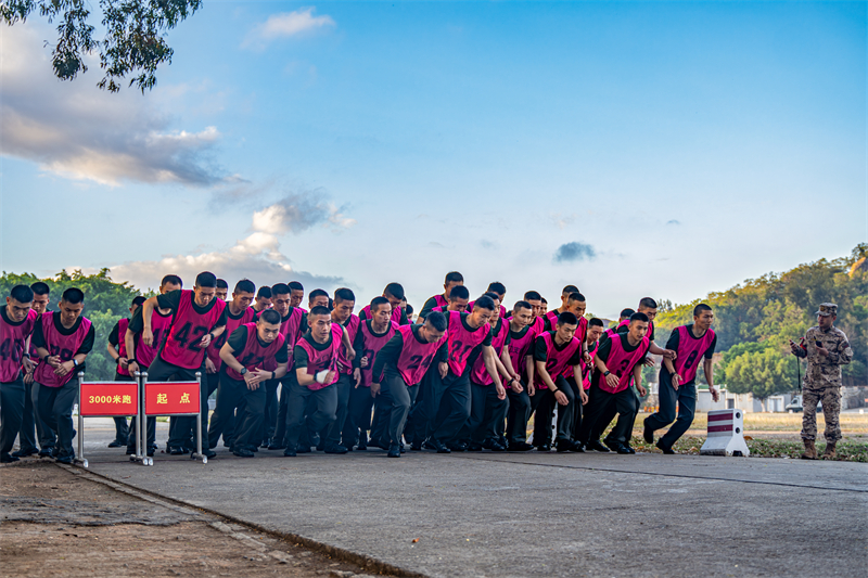3000米起跑线前,官兵们蓄势待发。杨乐松 摄