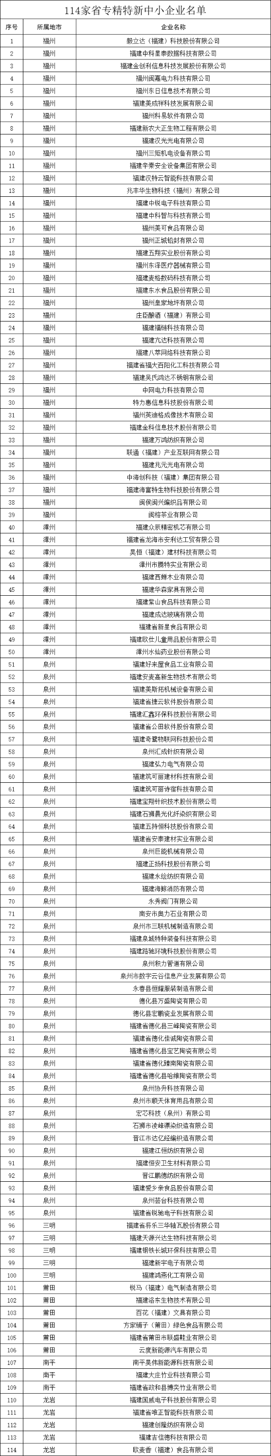 114家!2024年福建首批省级“专精特新”中小企业名单公布