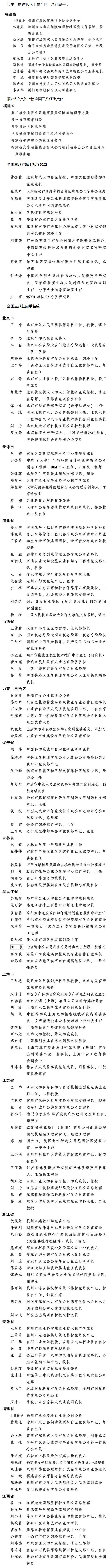 全国名单公布!福建这些个人和集体入选