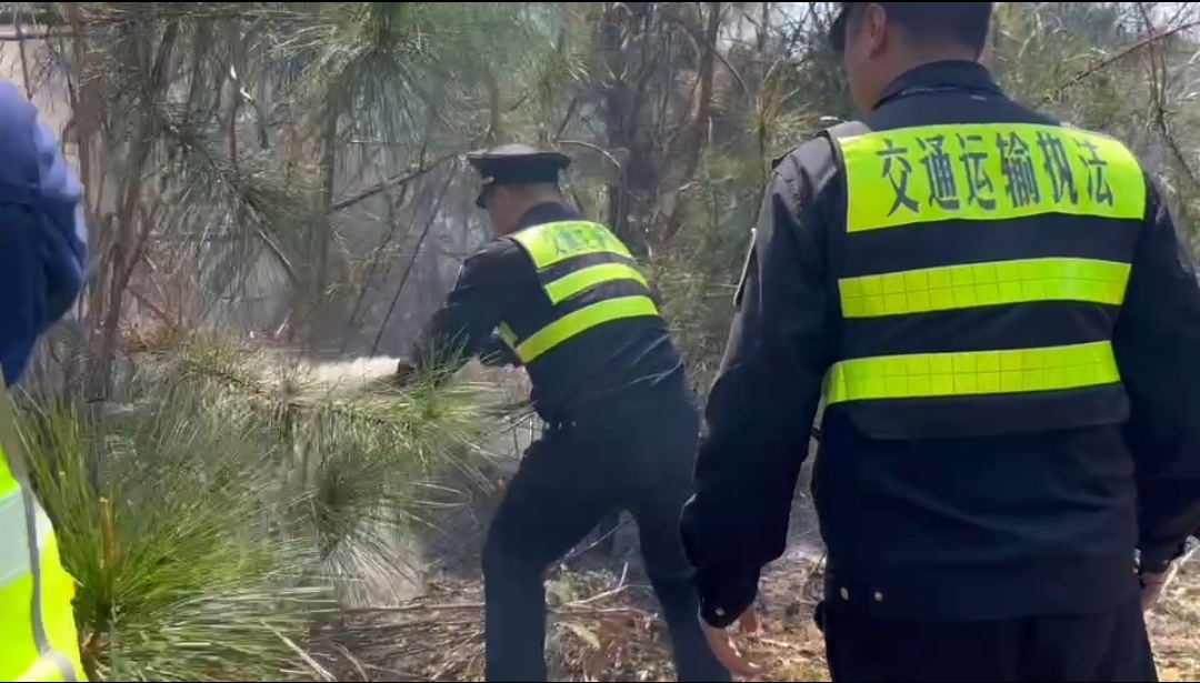 高速边坡起火,南平高速执法员紧急救援