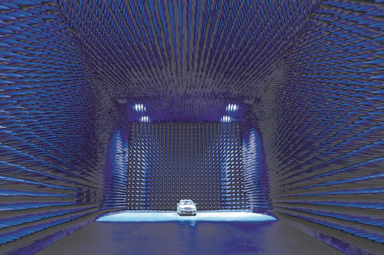 亚洲最大的汽车玻璃天线3D暗室里,一排排蓝色的棱锥状吸波材料整齐分布于各个墙面。“这里提供了一个可以完全屏蔽环境中电磁波干扰的场所,为了使汽车天线设计和测试更加精确、高效,当时我们在这里做了无数次实验。”福耀集团玻璃工程研究院工作人员介绍。