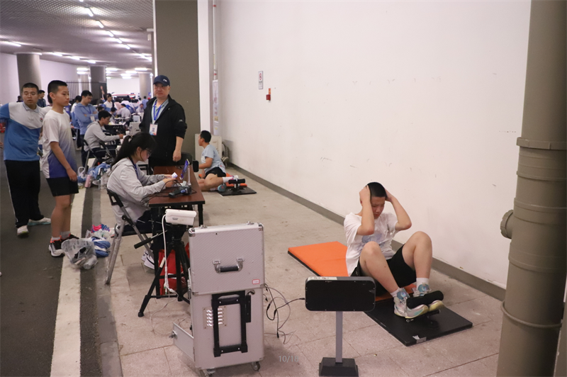 考试期间,福州市教育局遴选了80名志愿者协助做好考生引导,考场秩序维护。在斜身引体项目,贴心准备了缓冲海绵垫,预防考生意外摔倒。在长跑项目终点,考生测试完,由志愿者引导陪伴考生通过慢走逐步恢复身体状态。现场还设置了考生饮水处,方便考生及时补充水分。