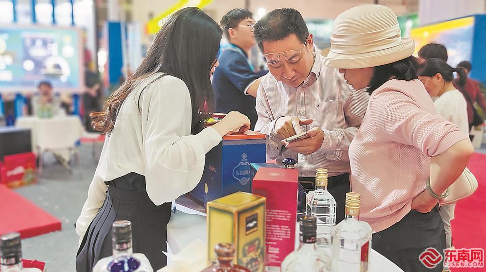 16日,在海交会上,参会嘉宾寻求与马祖高粱酒的合作机会。