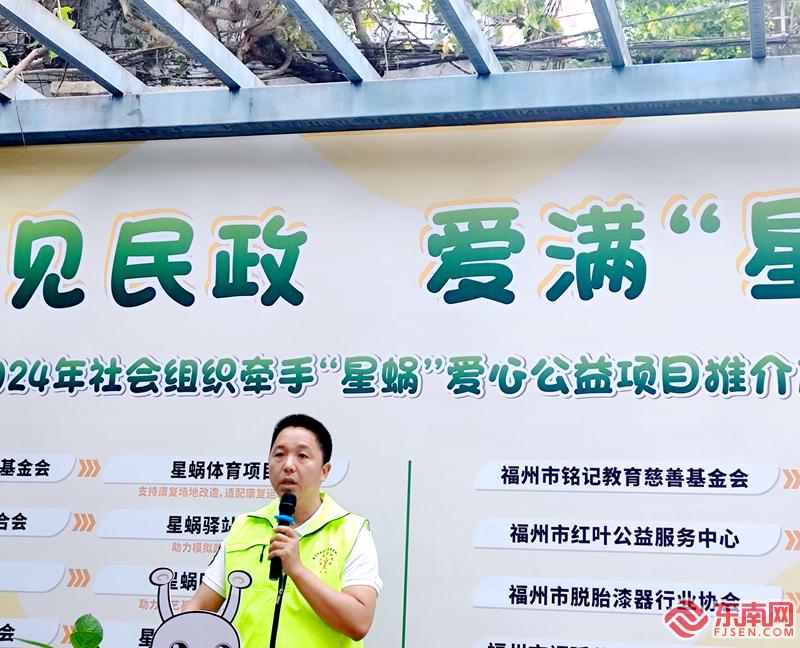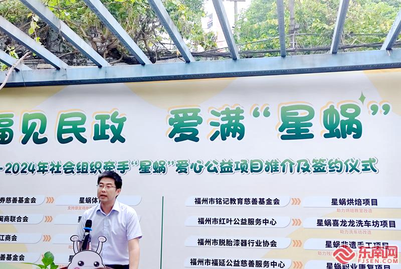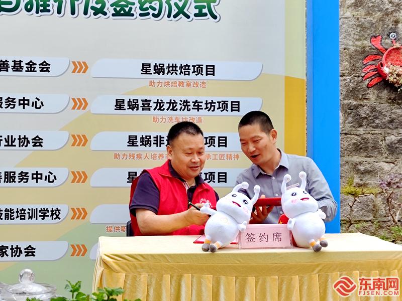 东南网5月19日讯(本网记者 林先昌 文/图)5月19日是第三十四次“全国助残日”。当日,由福建省民政厅指导,“福见民政 爱满‘星蜗’”社会组织牵手“星蜗”爱心公益项目推介及签约活动在福州市第二社会福利院举行。