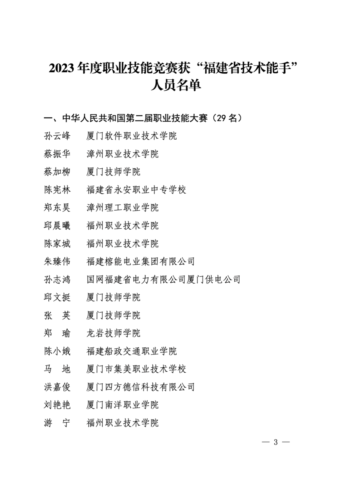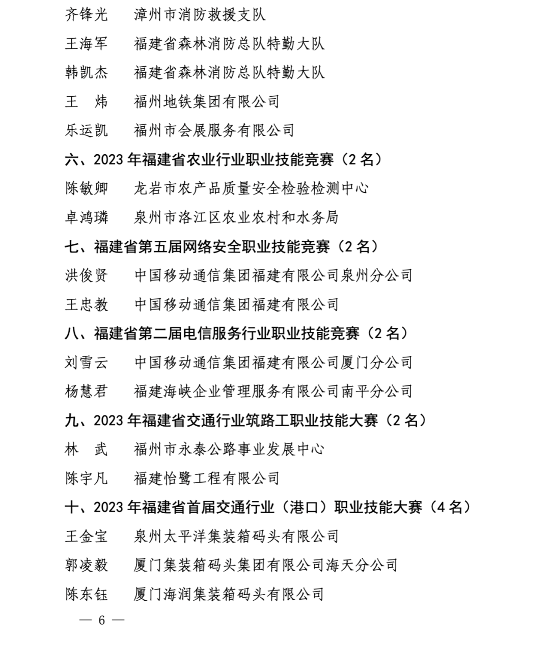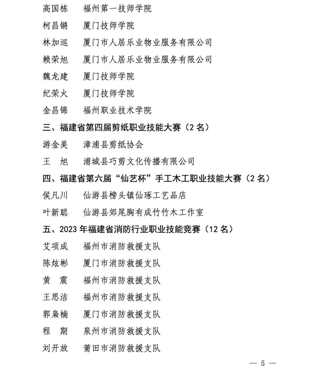 认定一批“福建省技术能手”