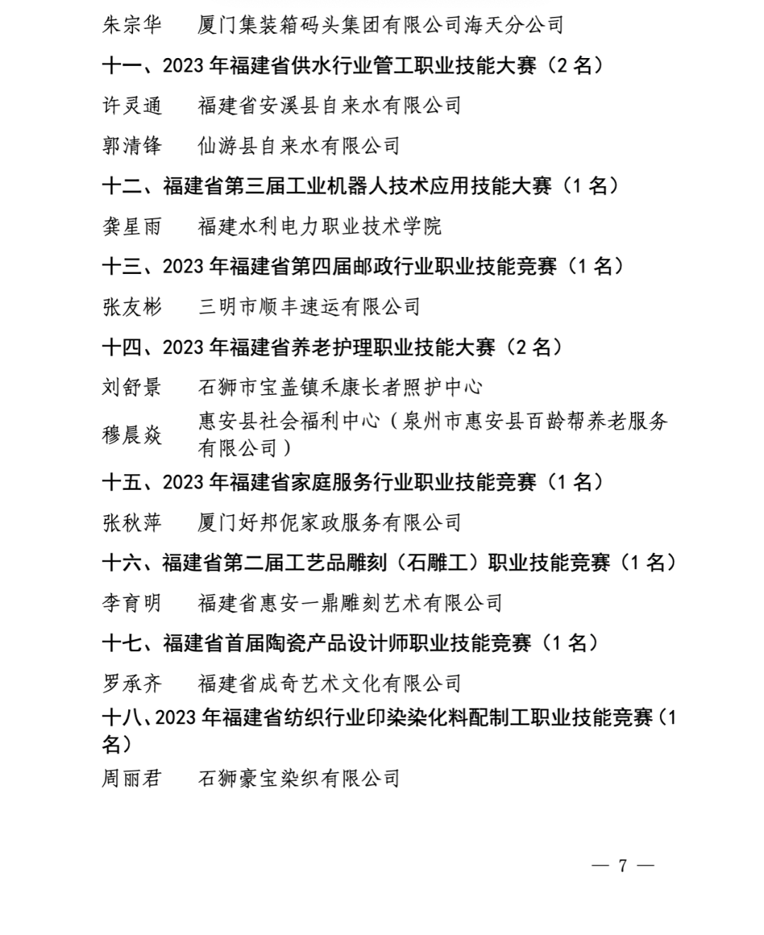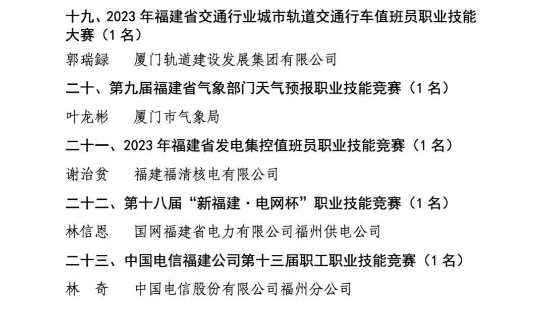 87名!他们,福建省技术能手!
