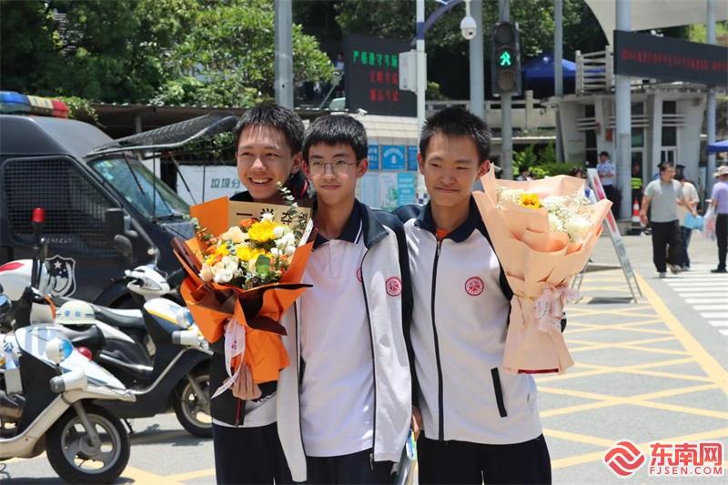 上午11时许,距离考试结束还有一段时间,在福州教育学院第二附属中学考点外,人头攒动,家长们头顶烈日,翘首以盼,难掩激动心情。考试结束约20分钟,考点大门缓缓打开,考生们面带微笑鱼贯而出。接送考生的家长如释重负,一脸轻松,不少家长拿起手机抓拍孩子走出考点的精彩瞬间,还有家长看到自己孩子后,快步向前,将手中精心准备的鲜花递到孩子手中,或给孩子拥抱。