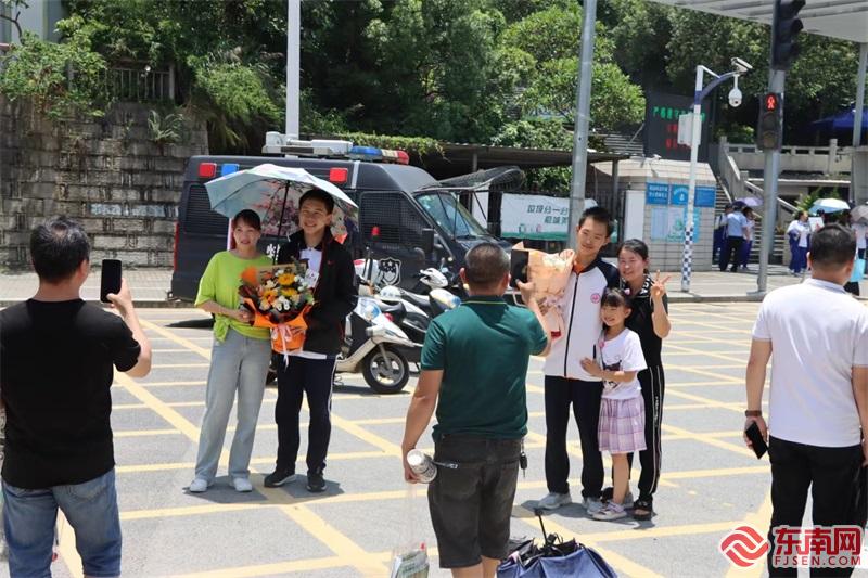 东南网6月21日讯(本网记者 卢金福 文/图)今日上午11点55分,随着《道德与法治》与《体育与健康基本知识》考试结束铃声响起,福建今年中考九年级所有科目考试正式结束。在各考点外,上演了一幕幕温馨感人的场景——家长们手捧着鲜花,满怀期待与喜悦,各种“花式”迎接考生。