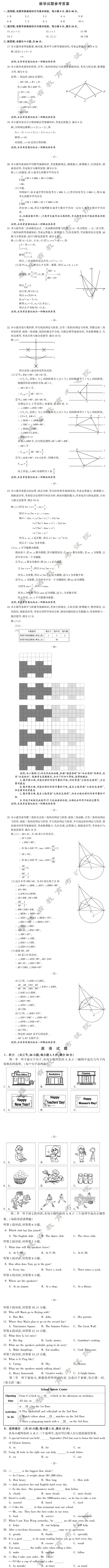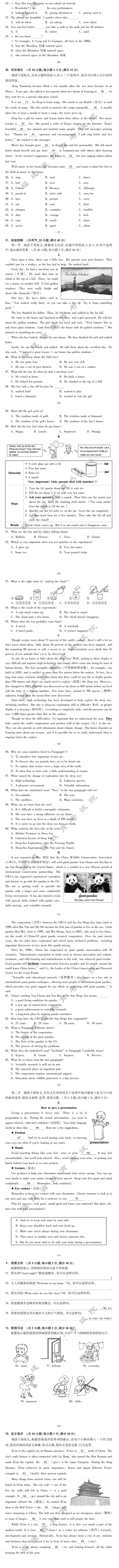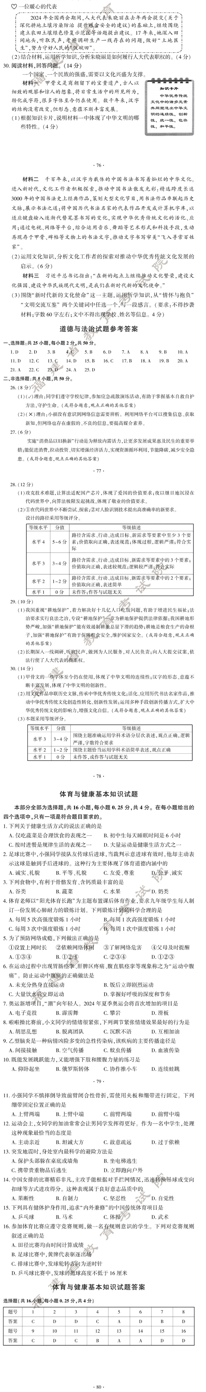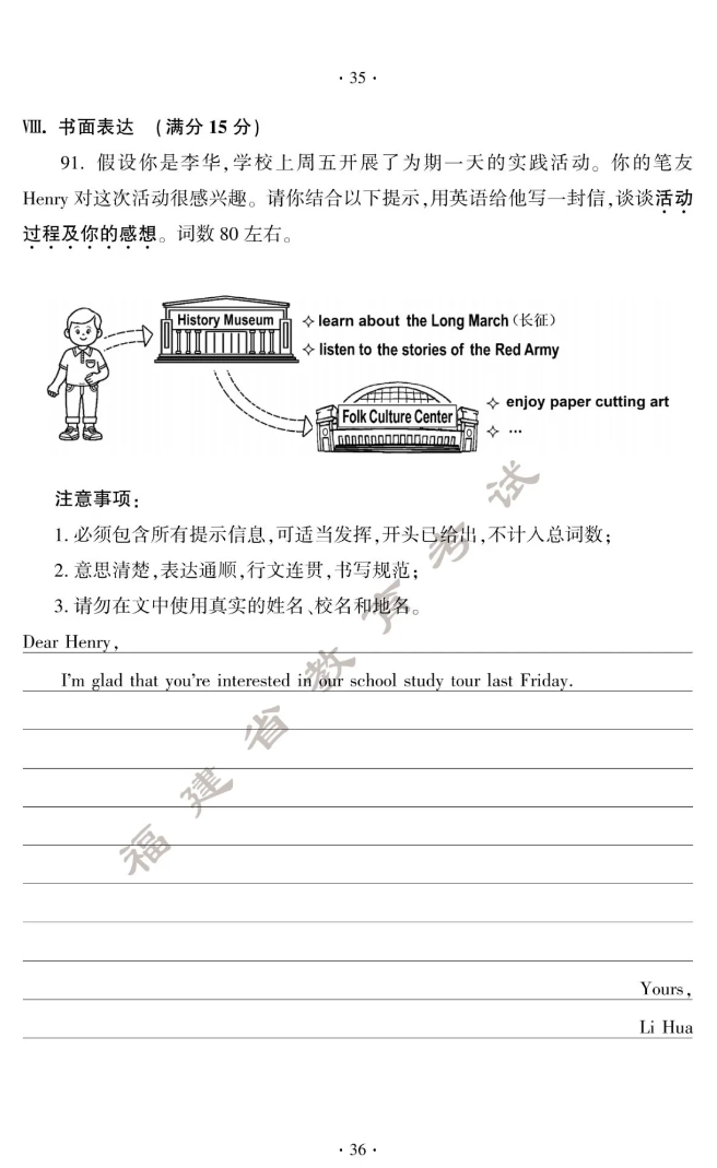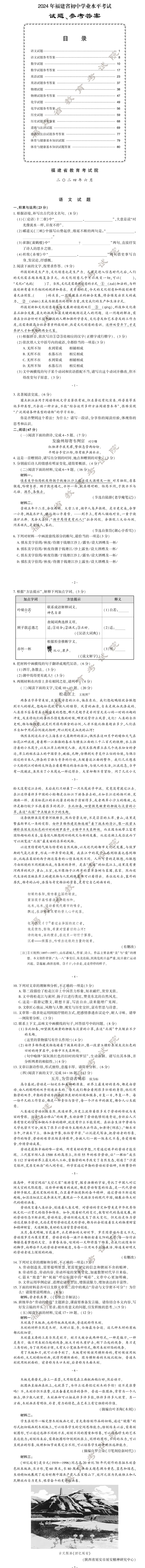2024年福建中考试卷及答案发布!
