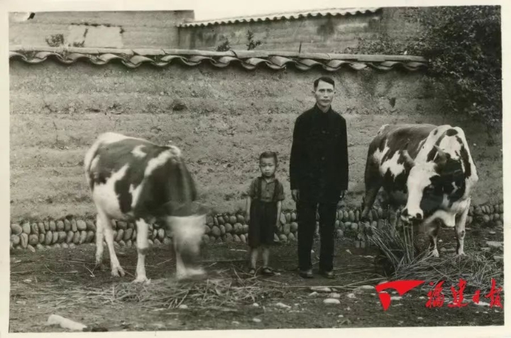 敖西拉与儿子敖国和在牛棚的合照 邵武市政协供图