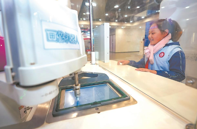 近日,福州市鼓楼区斗南小学的小朋友在省科技馆近距离体验人工智能的科技魅力。 谢贵明 摄