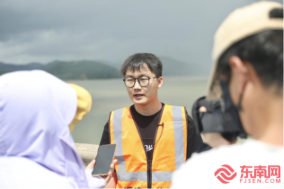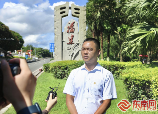漳州市公路中心古雷港分中心工程股蔡鹏斌接受记者采访。 东南网记者 杨林宇 摄