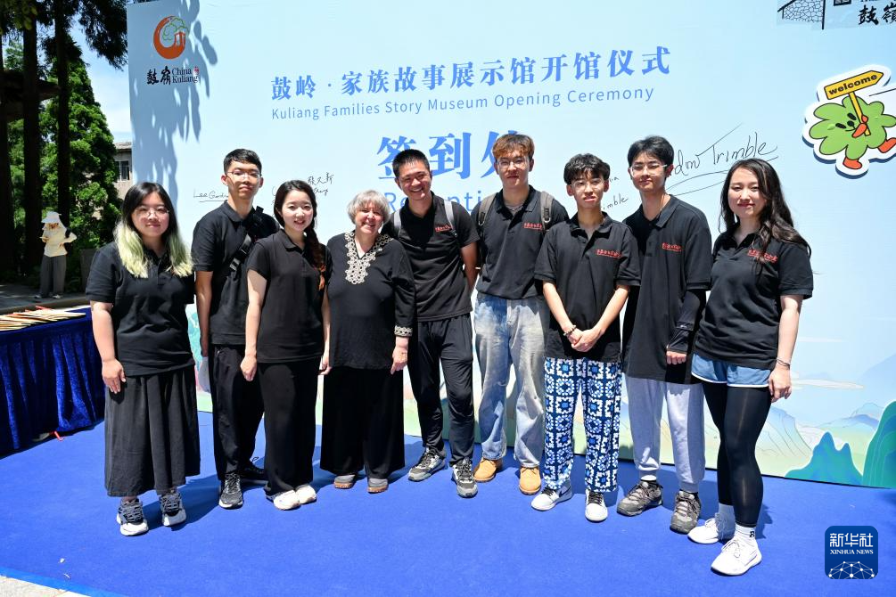 6月22日,林轶南(中)、穆言灵(左四)和华东理工大学古厝活化实验室的老师和同学们一起在“鼓岭·家族故事展示馆”开馆仪式上合影。