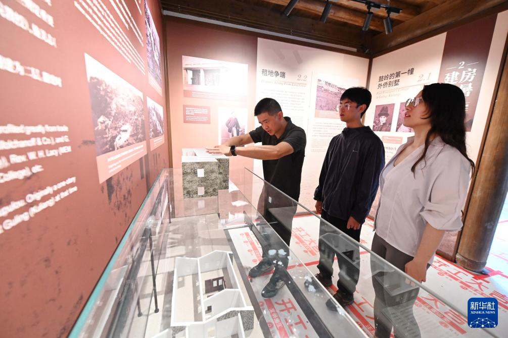 6月18日,林轶南(右)和华东理工大学古厝活化实验室的研究生周天懿在根据史料布置“鼓岭历史建筑展示馆”。