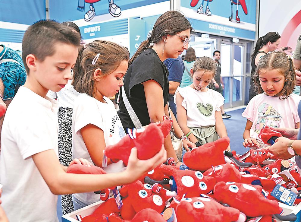 顾客在巴黎奥运会官方特许商品旗舰店选购奥运会吉祥物“弗里热”周边纪念品。大部分吉祥物由泉州两家工艺品公司生产。新华社发