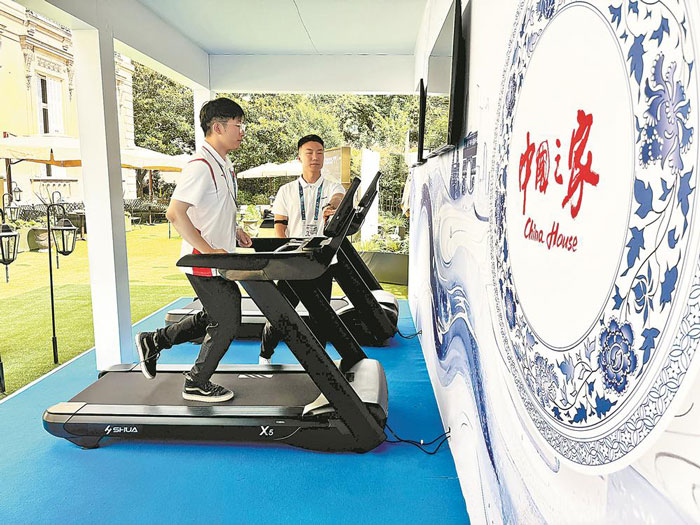 “中国之家”中的舒华体育健身器材。肖榕 摄