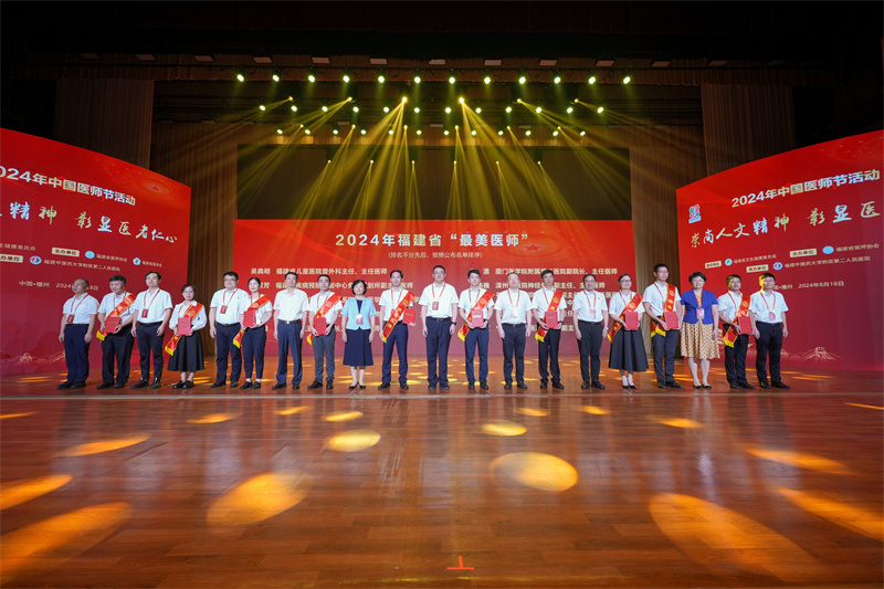 大会颁发了2024年福建省“最美医师”证书。为加强卫生健康系统职业道德建设,弘扬精湛医术、高尚医德和良好医风,发挥典型示范作用,紧紧围绕全省卫生健康工作重点,进一步激发广大医务工作者的荣誉感和使命感,努力建设一支思想端正、业务过硬、作风扎实、爱岗敬业、无私奉献、群众公认的医疗卫生队伍,中共福建省委宣传部、福建省卫生健康委员会、福建省总工会决定在全省开展2024年福建省“最美医师”学习宣传活动,经各单位申报共推选福建省妇幼保健院吴典明等10位同志为2024年福建省“最美医师”,福州大学附属省立医院徐杰等10位同志为2024年福建省“最美医师”提名对象。