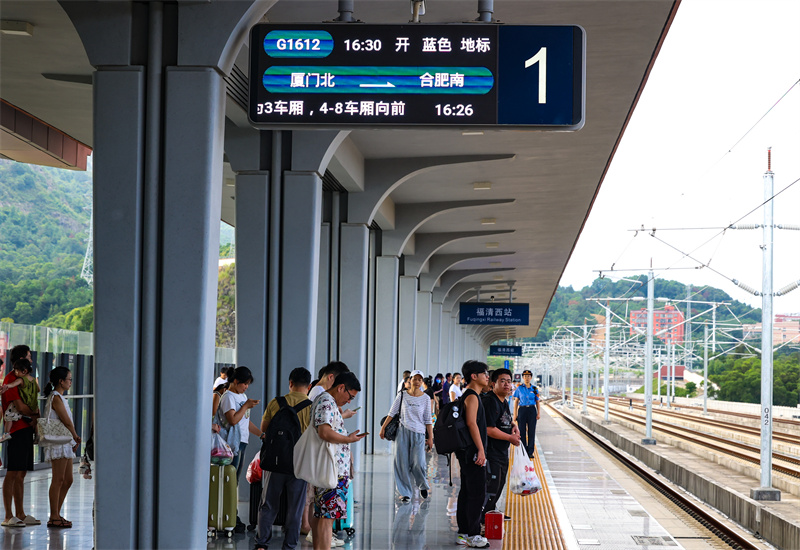 中国铁路南昌局集团有限公司福州车务段福清西站站台上旅客正在等候列车 (王勇富 摄)