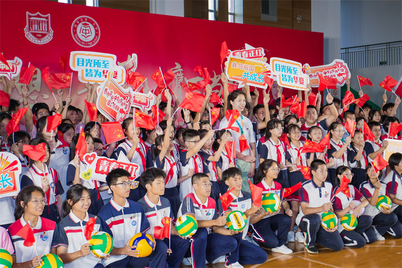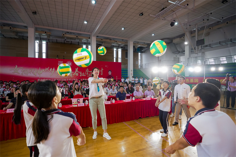 现场,大中小学生与奥运冠军徐云丽面对面交流,互动送上了手绘Q版文创、手工品和鲜花,并开展一场学生趣味自垫排球赛。“在中国女排的集体里,没有你,没有我,只有我们。”“人生没有等出来的辉煌、只有干出来的精彩。”“一分一分‘死磕’、一场一场‘硬拼’”......课上,徐云丽结合自身12年国家队运动员以及3届奥运会参赛经历,从坚定“祖国至上”的爱国信念、涵养“团结协作”的优良品质、锻造“顽强拼搏”的过硬本领、锤炼“永不言败”的坚韧风骨等四个方面,向在场的师生们分享她的成长故事和心路历程,让女排精神可感、可知、可行。她寄语同学们要勇于拼搏、敢于担当,积极从女排精神中汲取前进的智慧和力量。
