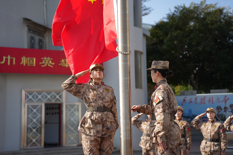 红装美,武装美,报国岂能让须眉。在厦门观音山附近海域的何厝民兵哨所,有一群年轻的女民兵,她们常年驻守海岛一隅,以岛为家,守护一方平安。她们身着迷彩,步伐坚定铿锵,将五星红旗冉冉升起,庆祝中华人民共和国75周年华诞。
