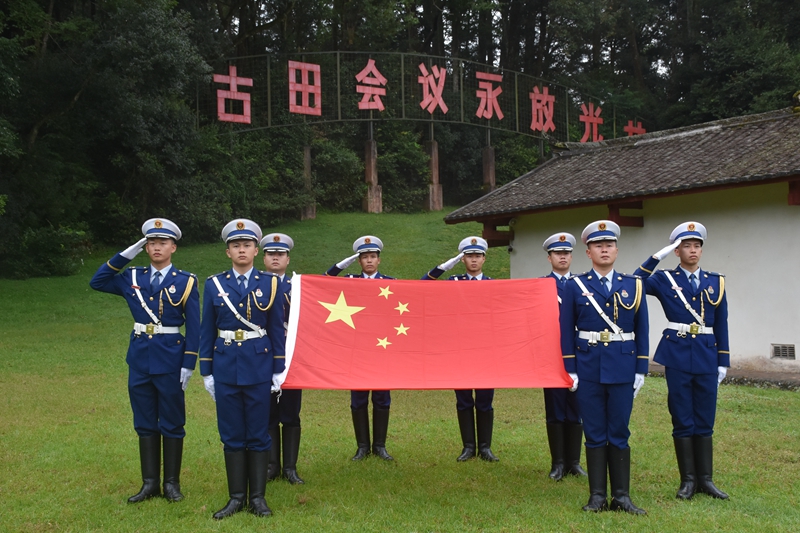 驻守在红色圣地的龙岩古田消防救援站传承红色基因,发扬“草鞋精神”,是闽西消防救援队伍中一块亮眼的“特色招牌”。为庆祝新中国75周年华诞,8位来自龙岩古田消防救援站指战员在古田会议会址向国旗敬礼,并祝福祖国繁荣昌盛,国泰民安。