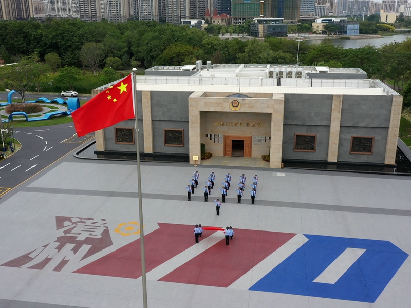 五星红旗冉冉升起,漳州市公安局全体民警整齐列队,面向国旗庄严敬礼,庆祝中华人民共和国成立75周年,“漳州110”在国旗下庄严宣誓,永当“人民的保护神”。