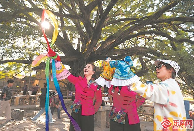 东南网12月14日讯(福建日报记者 施辰静 通讯员 李小琴 冯木波 文/图)潺潺流淌的溪水、高大茂盛的巨型古榕群、阳光铺洒的鹅卵石古道、形态各异的土楼、鳞次栉比的村舍……初冬时节,走进官洋村,一幅山川与田园、土楼交织的美丽乡村画卷徐徐展开。